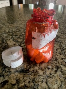 Can you imagine what went through my head when I saw a shredded box, a chewed up bottle, and pills everywhere (some which had been thrown up)!!!? After I made phone calls and realized we weren’t going to lose her I started thinking about how she was going to get me my $150 back. 😡